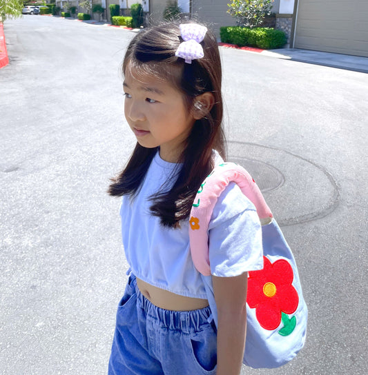 Hair Bow Clips Set with Pink & Blue Ribbon Covered